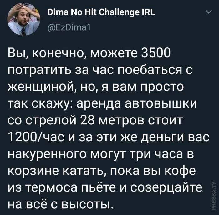 Вышка за 1200 р/час?! Вы откуда? 4000 рубликов за часик, и хорошо ещё, если не будет условия о минимальном времени (оплата от двух часов).